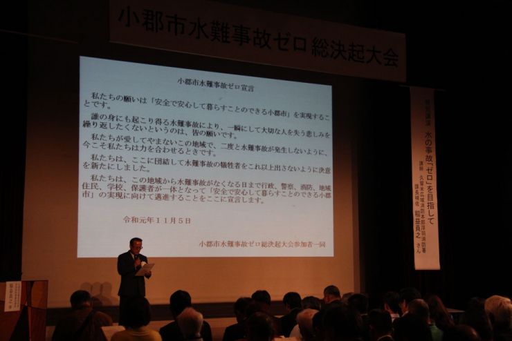令和元年11月5日(火曜日)、小郡市生涯学習センター七夕ホールで、小郡市水難事故ゼロ総決起大会を開催しました。
