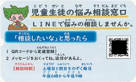 配布されたカードの二次元コードから友だち登録するとラインで相談できます。