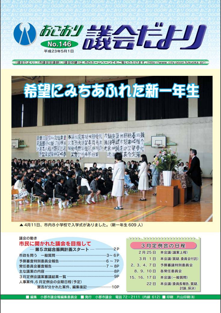 | P10 | 請願、意見書、 3月定例会の会期日程 賛否が分かれた案件、編集後記 |