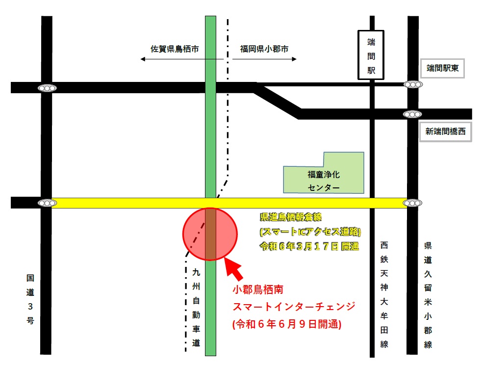 また、小郡鳥栖南スマートICが開通することで、災害時の支援強化や医療体制の向上など、九州各地への波及効果が期待できます。問合せ